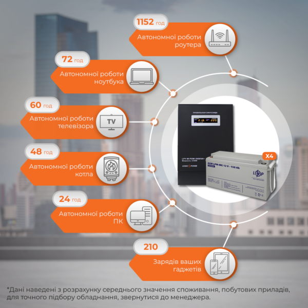 Комплект резервного живлення LP (LogicPower) ДБЖ + мультигелева батарея (UPS B1500 + АКБ MG 2880Wh)
