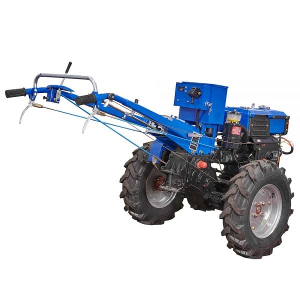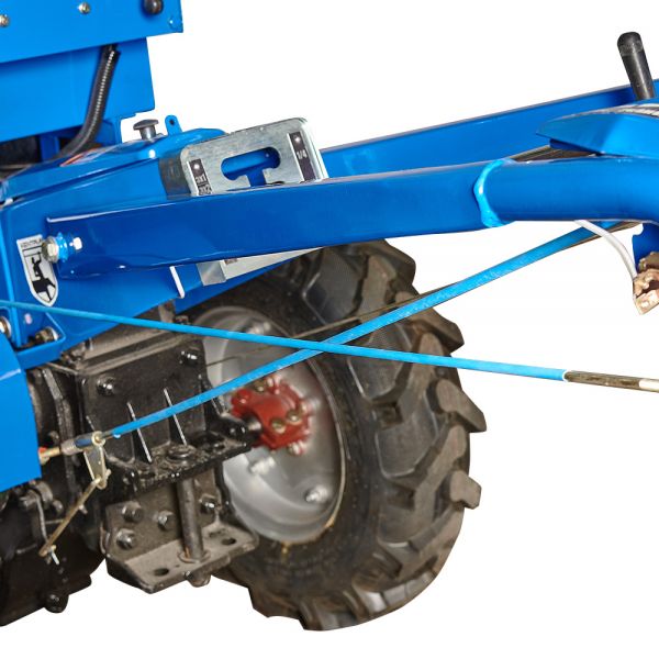 - Особенности: Надежная коробка передач с упрощенным переключением пониженной и повышенной передач; двухдисковое сцепление для более надежного и мягкого трогания; четырехручейковый шкив для обеспечения максимальной передачи крутящего момента и уменьшения пробуксовки клиноременной передачи; увеличенная ширина колеи – 740 мм; плавная регулировка колеи, что дает возможность подстроить мотоблок под разные условия использования (под различное междурядье обрабатывающих культур); чугунная крышка картера; пятиточковое крепления рамы; металлический отстойник для топлива; укреплена перфорированная решетка радиатора; удобные и мягкие рукоятки руля; расширенный зип.